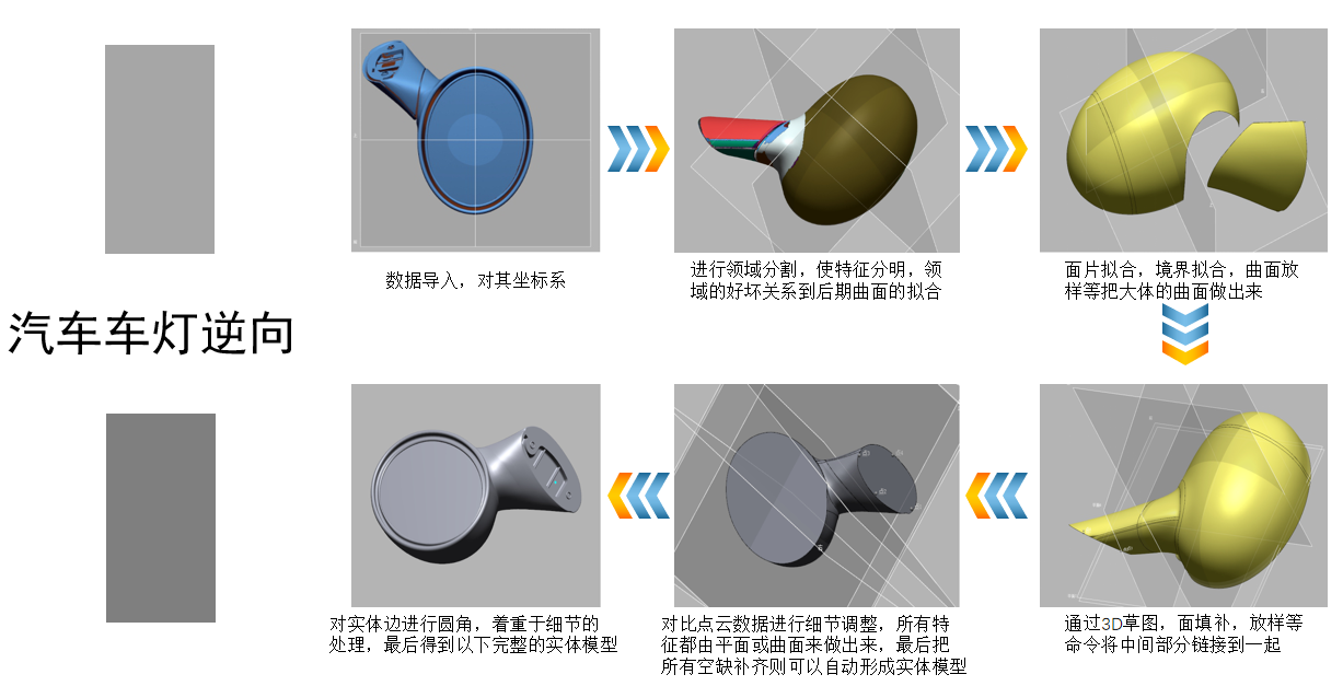 1、在生產初期的概念階段,可以進行用逆向工程做競品分析、對競品及其零部件進行分析研究做研發設計,做虛擬模型,模型改造等。